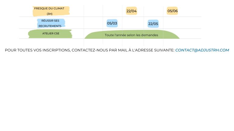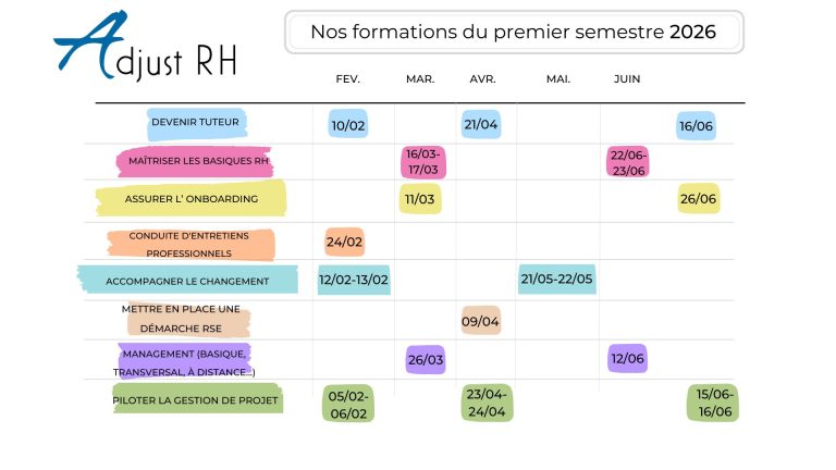 Ce qui rend nos formations uniques ? L’expertise de nos formateurs. Chez Adjust RH, chaque programme est animé par des professionnels passionnés, qui possèdent une connaissance approfondie de leur domaine : RSE, RH (pilotage et réglementation), CSE, management d’équipes (Codéveloppement) et coaching, audit, conduite de projet, sécurité des personnes (DUERP), et bien plus encore.